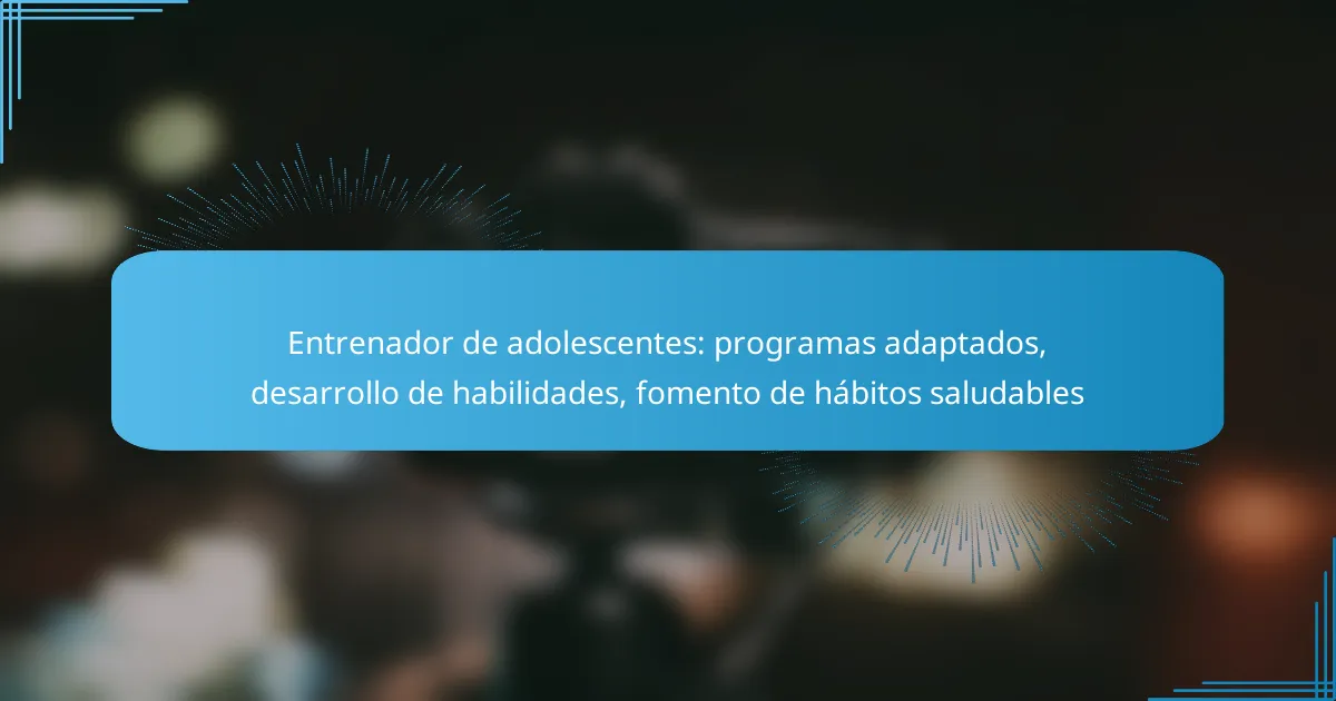 Un entrenador de adolescentes es un profesional que guía y apoya a jóvenes en su desarrollo personal y habilidades. Su rol implica fomentar hábitos saludables, mejorar la autoestima y ayudar a los adolescentes a enfrentar desafíos emocionales y sociales.
